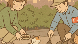桜耳の猫たちと、それを支える地域のボランティアの方々。人と猫が共に生きる「地域猫」のお話です。